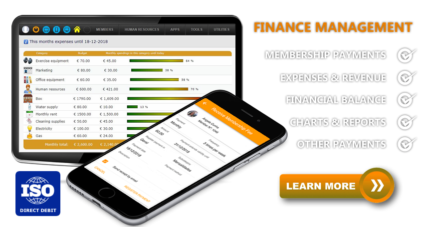 Organize a sua box/estúdio por categorias de despesas e receitas. Faça toda a gestão de pagamentos de mensalidades, seguro anual, folha de consumos e outros alertas de pagamento. Débito Direto ISO, balanços financeiros e emissão de faturas (opcional).